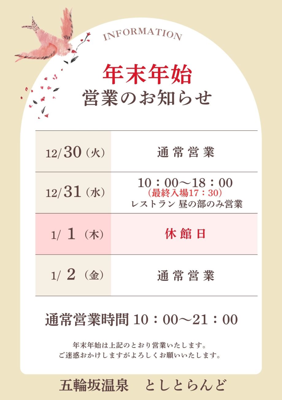 年末年始営業のご案内