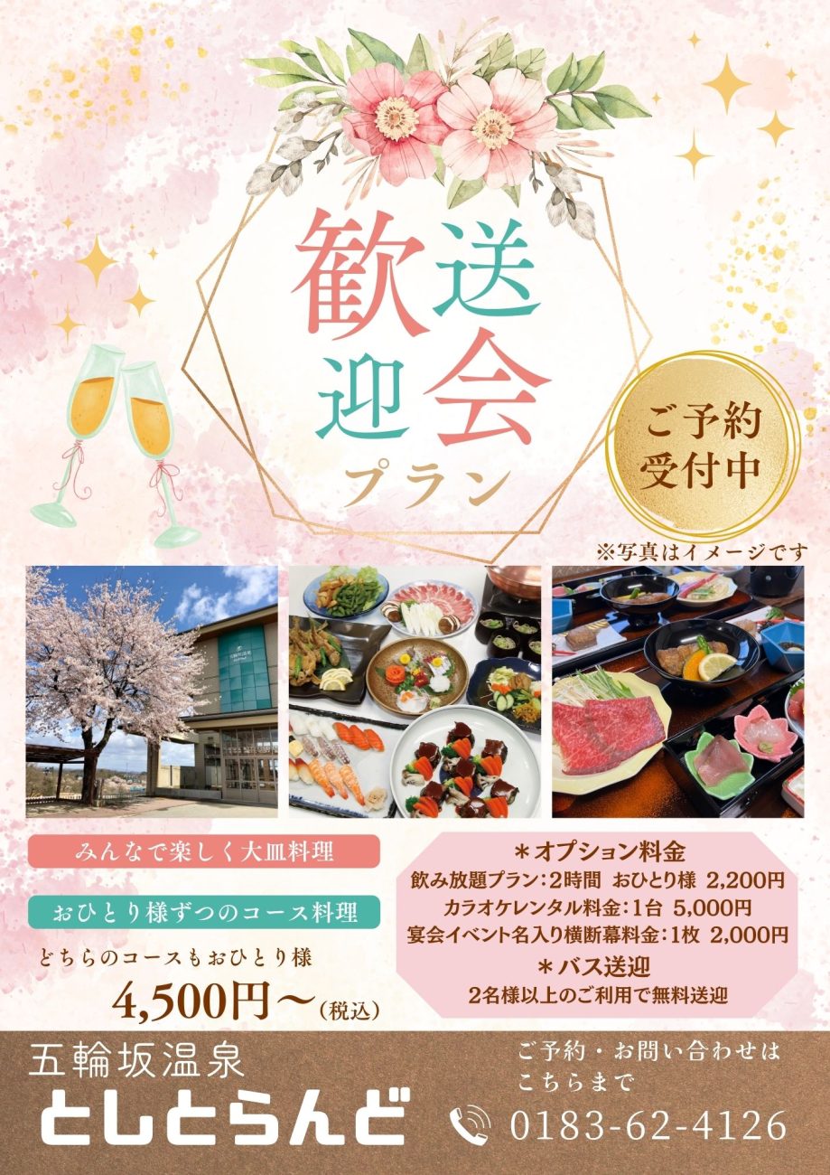 五輪坂温泉としとらんどでは歓送迎会のご予約を承っております。